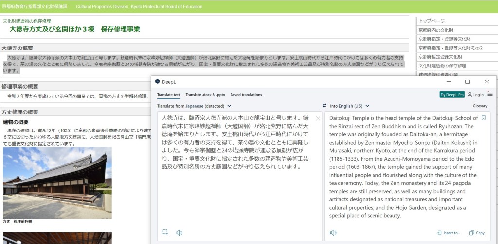 DeepL: This translation tool is frequently used in Japan. It is a browser- and application-based program. The image below illustrates well how it works.